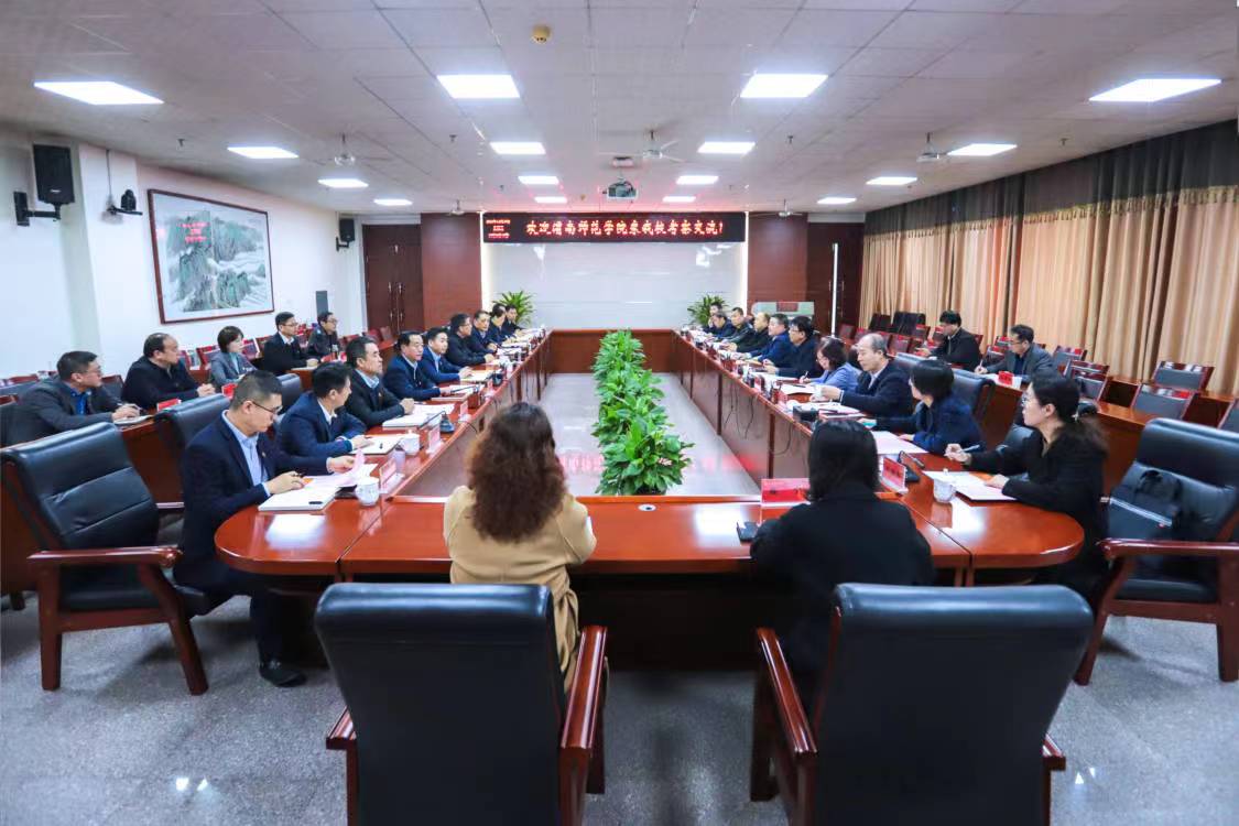 11月10日,太阳官网党委书记卓宇、校长张守华一行到咸阳师范学院学习考察。
