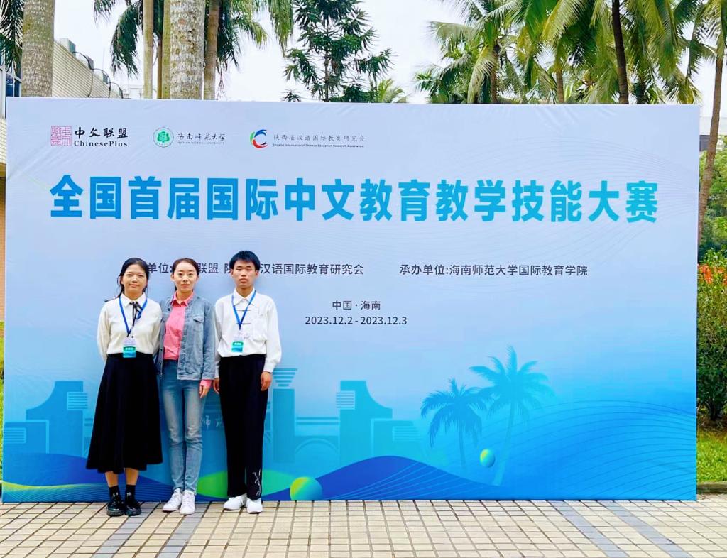 近日,由中文联盟、陕西省汉语国际教育研究会主办的“全国首届国际中文教育教学技能大赛”复赛及决赛在海南师范大学举行。太阳官网人文学院汉语国际教育专业21级学生仇乃鹏荣获一等奖,陈曼玉荣获优秀奖。颁奖仪式在北京国家会议中心举行。