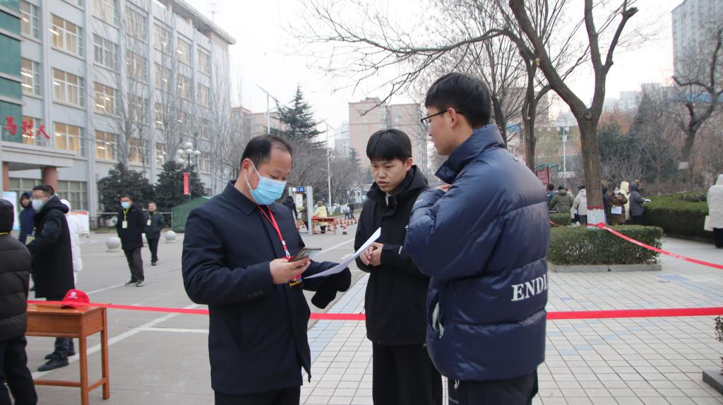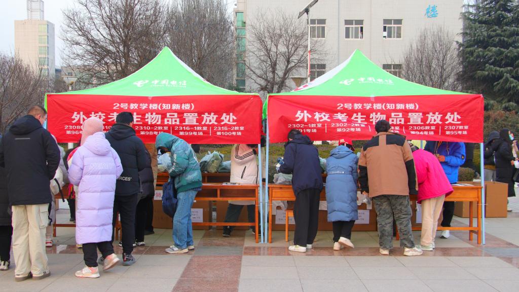 本着服务考生的原则,避免考生在严寒天气中等待,学校在官网、官微提前发布 “云端看考场”服务及考点公告、考生须知等通知,提醒考生做好考前相关准备。公告中的考生进出校路线图中清晰标明校门、非考试用品放置区域、考试区域等位置及路线,帮助考生提前了解考场情况,快速顺畅地进行存放物品、安检、进入考试区域和考场。