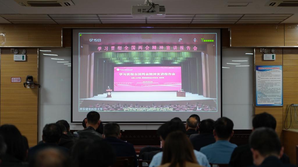 此次宣讲报告会由省委教育工委主办,学习贯彻全国两会精神省委宣讲团成员,全国人大代表、西安建筑科技大学校长赵祥模主讲。报告从五个方面传达了全国两会精神,并指出,两会期间,习近平总书记的三次重要讲话精神以及政府工作报告中对加强高质量教育体系建设的明确部署,令人倍感振奋、深受鼓舞。