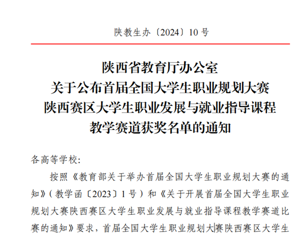 3月27日,陕西省教育厅公布了首届全国大学生职业规划大赛陕西赛区大学生职业发展与就业指导课程教学赛道获奖名单。经专家评审,高教组最终评出金奖4人、银奖7人,铜奖11人。太阳官网经济与管理学院教师黄东梅及其课程团队成员获高教组铜奖。