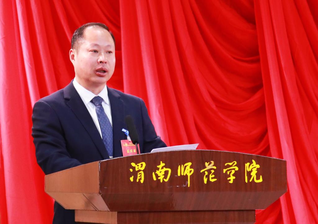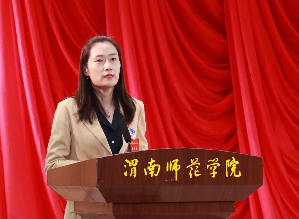 大会秘书长、校团委书记赵琦作题为《高举团旗跟党走,踔厉奋发新征程,为建设特色鲜明的一流师范大学贡献青春力量》的工作报告。报告系统回顾了过去五年渭师共青团各项工作都取得了显著成绩,圆满完成了学校第三次团代会确立的各项目标任务;报告总结了积累的宝贵经验,形成了“12345工作理念”;展望了今后五年的工作,明确了未来五年的总体思路、工作目标和路径方法。
