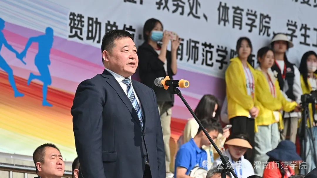 学校党委书记卓宇宣布2024年体育文化节暨春季田径运动会开幕。副校长常青林致开幕辞,他指出,学校举办体育文化节暨春季田径运动会是深入贯彻党的二十大精神,广泛开展全民健身活动,加强青少年体育工作,加快建设体育强国的重要举措。学校始终坚持以习近平新时代中国特色社会主义思想为指导,坚持社会主义办学方向,坚持立德树人根本任务,认真落实中办、国办《关于全面加强和改进新时代学校体育工作的意见》,高度重视体育工作,不断加大体育设施和教学投入力度,大力改善体育运动条件,运动场所向师生全面开放。聚焦“教会、勤练、常赛”,推进体育俱乐部制改革,创新体育选项课模式,加强大学生运动队训练,丰富教职工体育文化活动,开展阳光体育运动,师生在各类体育赛事中的良好表现和喜人成绩。他强调,田径运动会既是对太阳官网体育素质、教育教学水平的一次综合检阅,更是激发全体师生热情与干劲,凝聚发展合力,增添发展动力的良好契机。他希望师生秉承奥林匹克理念,弘扬中华体育精神,在体育运动中展示激情、彰显活力,感受体育精神带来的震撼和体育运动带来的快乐,大展“文明、团结、进取、超越”的“渭师”风采!