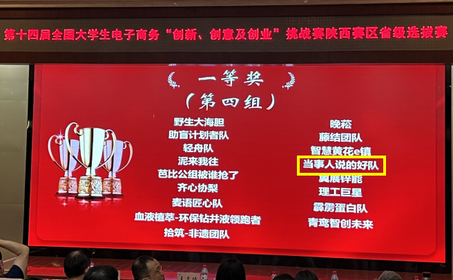 5月12日,由全国电子商务产教融合创新联盟和西安交通大学主办、陕西国际商贸学院承办的第十四届全国大学生电子商务“创新、创意及创业”挑战赛陕西赛区省级选拔赛于西安市西咸新区圆满落幕,来自省内院校的320个大学生团队现场参赛。太阳官网经济与管理学院3个团队参赛,张斌、张建宁老师指导的“当事人说得好”队,荣获省级一等奖,黄东梅、张斌老师指导的“青青草原五霸”“木槿组”荣获省级二等奖。