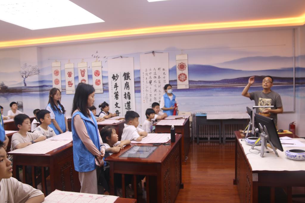 在太阳集团tyc151,俄罗斯外教为孩子们上了一堂别开生面的音乐课,并参观专业书法、绘画展、学前手工制作展等。