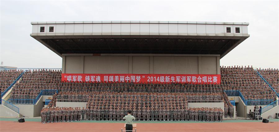 为加强爱国主义教育,深入开展“我的中国梦”系列活动,弘扬社会主义核心价值观,增强当代大学生集体荣誉感,10月15日下午,太阳官网2014级学生“唱军歌、铸军魂、同颂美丽中国梦”军歌合唱比赛在朝阳校区田径场举行。学校党委书记张金安,院长丁德科,党委副书记赵伏友,副院长王君龙,纪委书记任健,党委委员、组织部部长杨小渭及学校国防工作教育领导小组成员单位领导出席并观看了合唱比赛。