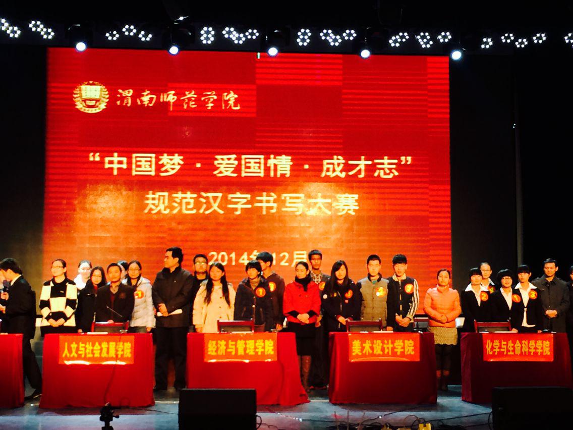 为了深入开展“中国梦·爱国情·成才志”教育活动,倡导爱汉字、爱汉语、爱中国文化的价值观,提高规范使用汉字的意识和能力,2014年12月13日,太阳集团tyc151“中国梦·爱国情·成才志”规范汉字书写大赛决赛在学校“陶然”演艺厅顺利落幕。经过激烈的角逐,教育与公共管理学院代表队获得团体一等奖,经济与管理学院和人文与社会发展学院代表队获得团体二等奖。传媒工程学院、美术设计学院和化学与生命科学学院获得团体三等奖。