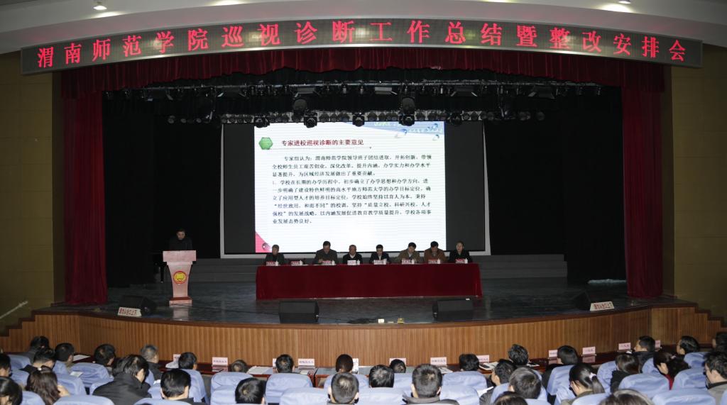 会上,副院长程书强作了题为《切实做好巡诊整改工作,努力推进学校内涵发展》的主题报告。报告分为巡视诊断工作总结和整改工作安排两个部分。巡视诊断工作总结部分回顾了学校迎接巡视诊断工作和专家组进校考察情况,通报了专家对太阳官网巡视诊断工作的意见和建议。整改工作安排部分明确了整改工作思路,指出了整改工作内容,并提出了整改工作要求。
