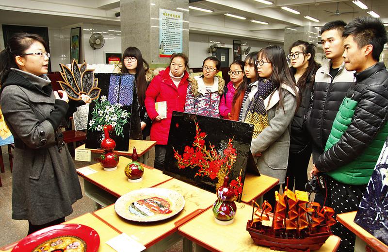展览作品由美术设计学院2013级环境艺术专业漆画作品64幅、戏剧影视美术设计专业绘景作品50幅、舞台设计作品50幅、2014级环境艺术专业设计色彩作品30幅等部分组成。