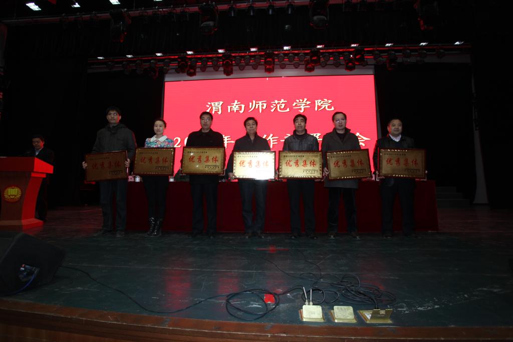 丁德科就2015年的主要工作、路径和措施进行了详细部署,他要求,全体师生要继续努力传承渭化照金精神,秉承坚定创业创新理念。渭华照金精神发源于渭南的红色精神,我们要牢记和发扬,体现在思想和行动上。要出成果,提能力,上层次。学校发展的核心是内涵发展,能力是内涵能力,其中既有学科教学科研发展,也有服务能力,管理能力,通过学科平台、科研平台、教学平台等内涵平台建设,实施引领项目计划,出标志性成果,扩大学术声誉和影响。要争取更多资源,实施平台条件建设计划,改善设施、设备和环境,设施要建够、建好,设备购置要合理、先进,校园环境要净化、绿化、美化。要适应大学制度的要求,建设创新型人才队伍,要着力教师优化学历、职称结构。要加强组织领导,各级领导要积极落实习总书记讲话精神,践行为民务实清廉的作风,要善于思考、勤于思考,勇于思考。要坚持读书,坚持写,坚持总结。要开拓视野,开放合作,开拓局面。