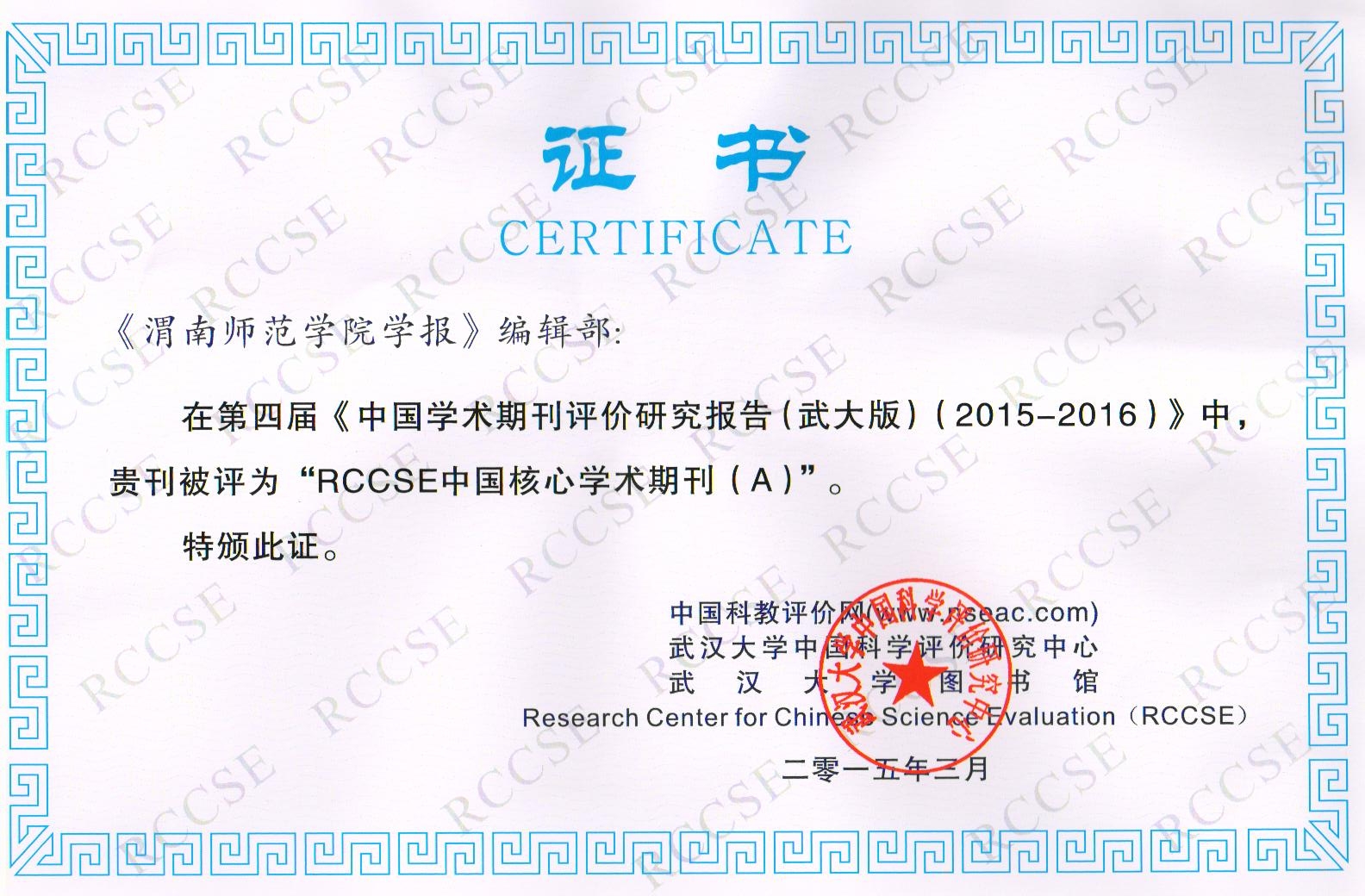 日前,由武汉大学中国科学评价研究中心(RCCSE)、武汉大学图书馆、中国科教评价网共同完成推出的第4版《RCCSE中国学术期刊评价研究报告——权威、核心学术期刊排行榜》公布。《太阳集团tyc151学报》在第四届《中国学术期刊评价研究报告(武大版)(2015—2016)》中被评为“RCCSE中国核心学术期刊(A)”,这是《太阳集团tyc151学报》首次进入RCCSE中国核心学术期刊(A)名录。