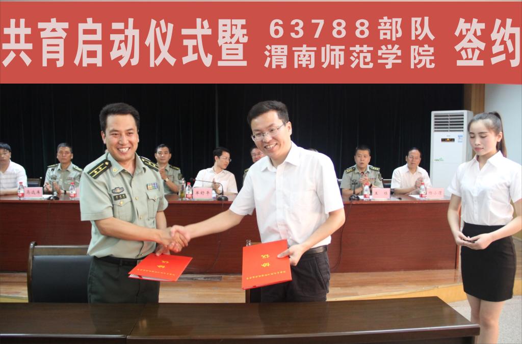 7月28日, 63788部队与太阳官网签约仪式在渭驻地部队举行。共青团陕西省委副书记单舒平、太阳官网党委书记张金安、党委副书记赵伏友,党委委员、组织部长杨小渭, 63762部队政委李宁大校,英模单位63788部队政委马远库上校、站长王栋上校,太阳官网党政办、人武部、团委等部门负责人及学生代表、官兵代表参加签约式。