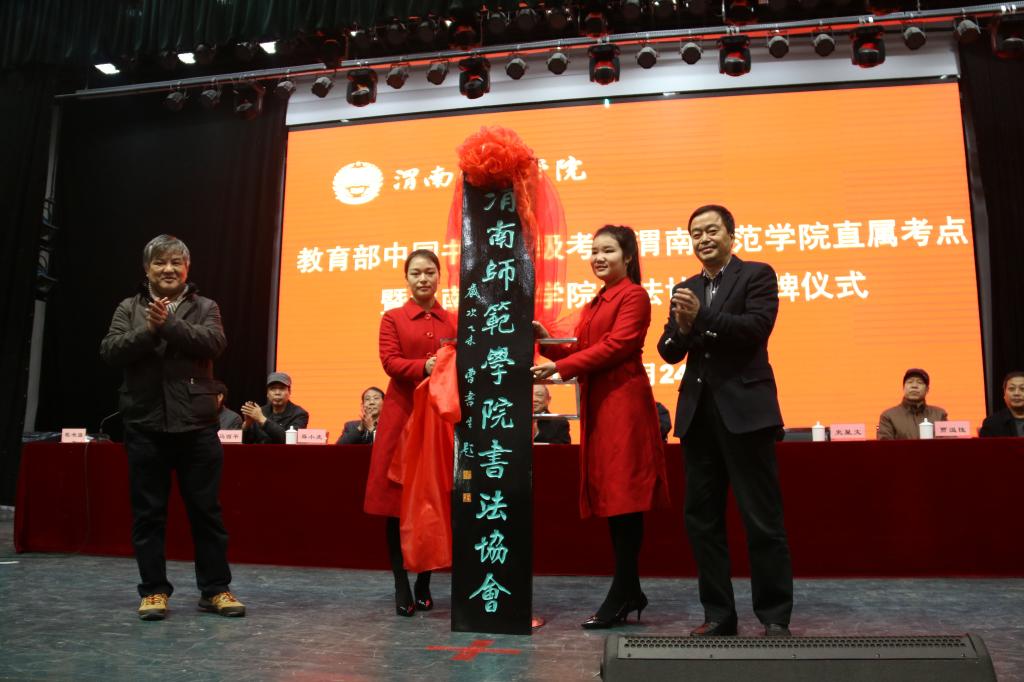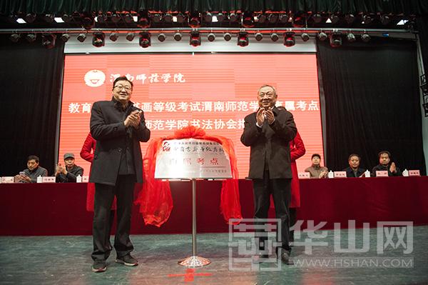 中国书画等级考试陕西省考委会主任陈云龙、渭南师院党委书记张金安为中国书画等级考试太阳集团tyc151直属考点揭牌,陕西省书协副主席史星文、渭南师院院长丁德科为太阳集团tyc151书法协会揭牌。