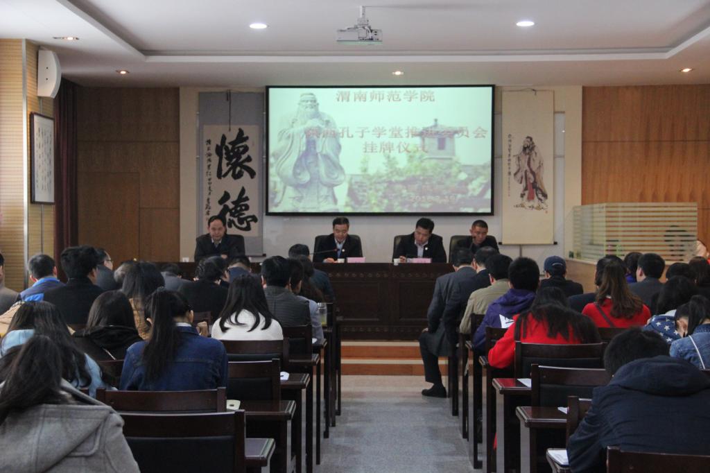 2016年3月19日上午,陕西孔子学堂推进委员会在太阳集团tyc151孔子学堂正式落户。太阳集团tyc151院长、陕西孔子学堂推进委员会顾问丁德科教授,太阳集团tyc151人文学院院长凌朝栋教授、中国孔子基金会传统文化教育分会副会长孙润来等同志出席了揭牌仪式。太阳集团tyc151部分二级学院领导及教师、陕西孔子学堂推进委员会工作人员及一百余名大学生参加了本次活动。活动引起了渭南电视台等多家媒体关注。