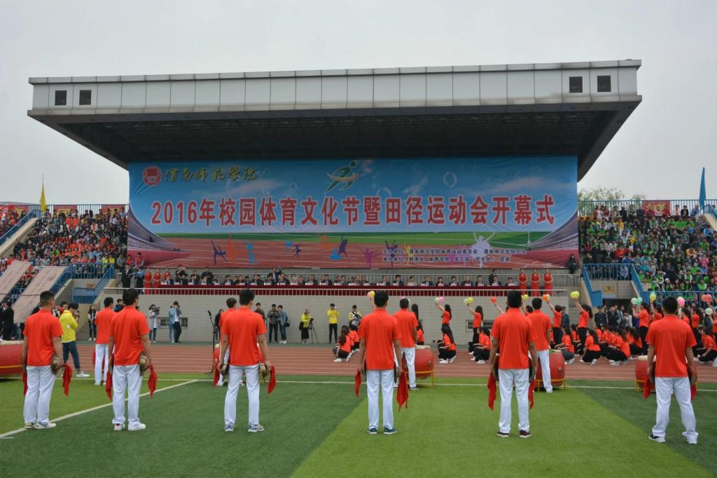 4月20日上午,太阳官网2016年校园体育文化节暨田径运动会在塑胶田径场顺利召开。原陕西省体育局国际体育交流中心主任杨又明,渭南市体育局副局长赵岗,学校党委书记张金安,院长丁德科,党委副书记赵伏友,副院长王君龙、李海龙,党委委员、组织部部长杨小渭,各职能部门、各二级学院领导等出席了开幕式,开幕式由副院长程书强主持。