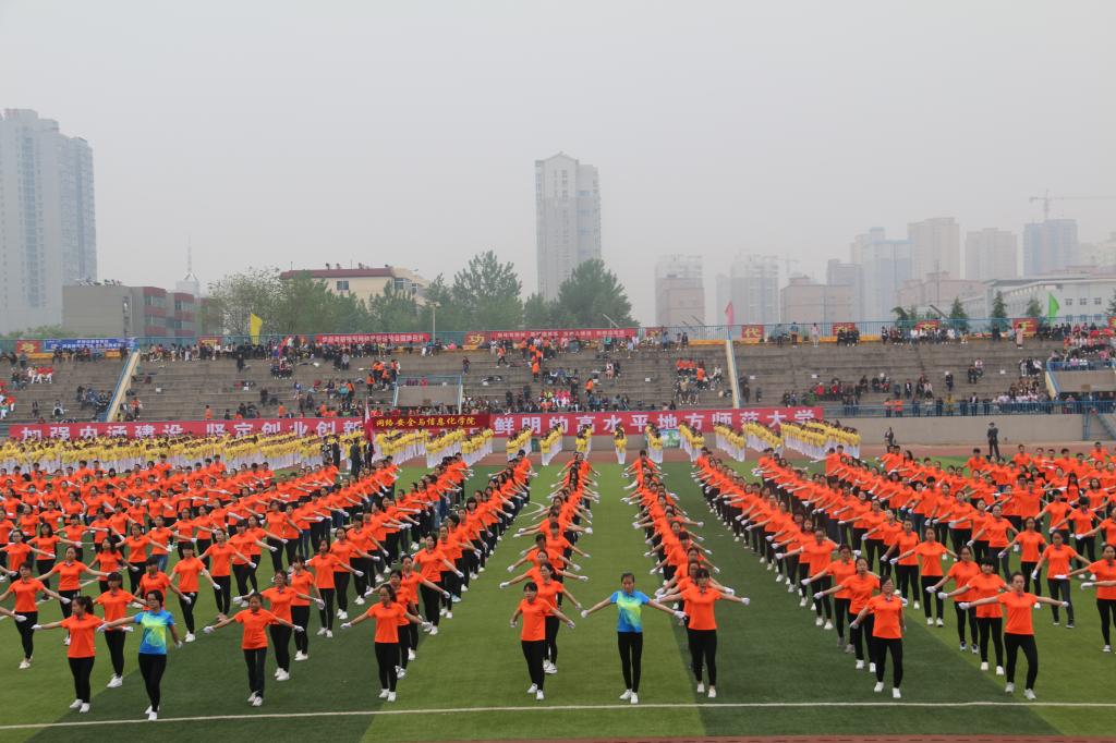 11500多名师院学子参加了第九套广播体操和自主编创的特色节目,活力四射的啦啦操、热辣性感的爵士舞、气势磅礴的腰鼓、刚劲有力的武术表演,点燃了在场同学的热情,掌声、呐喊声此起彼伏,经久不息,生动地展现了太阳官网大学生健康向上的精神风貌。