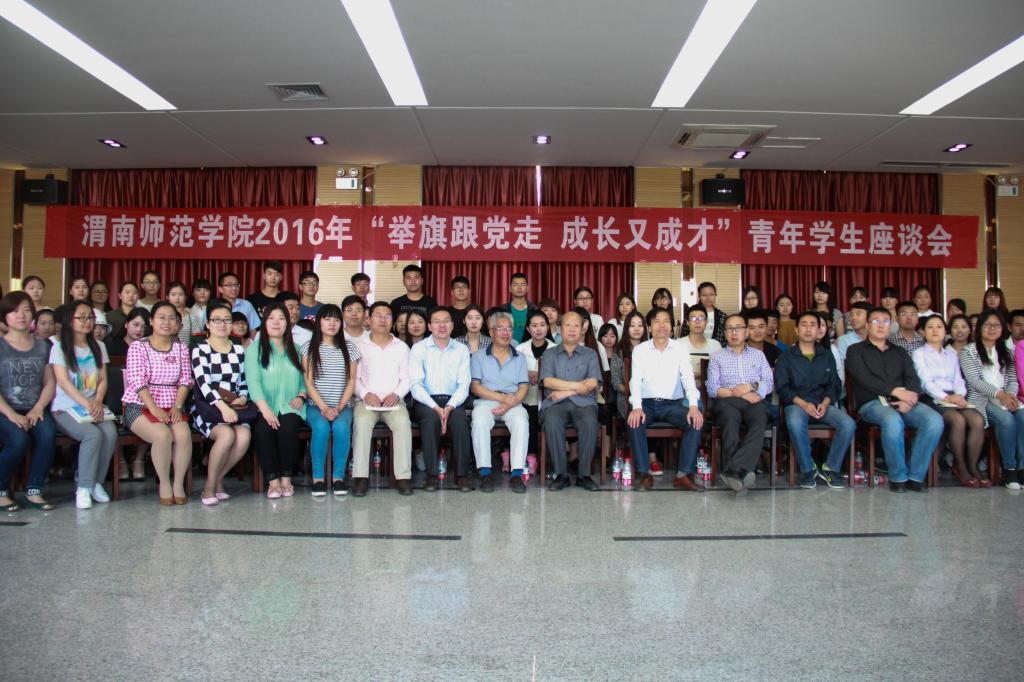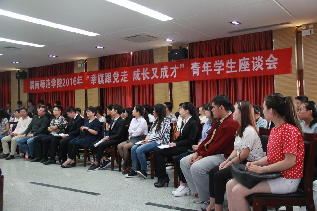 5月4日下午,学校在逸夫楼科学大讲堂举行2016年“举旗跟党走 成长又成才”青年学生座谈会。校党委副书记赵伏友,老团干代表冯巍,宣传部部长杨利民,学工部部长王俊安,教务处副处长林关成,招生就业处副处长刘杨志,校团委书记姚明亮,青年博士教师代表刘峰,学校团委成员、各二级学院专职团干部、优秀团员团干代表,五四红旗团总支,团支部代表以及在志愿服务活动中涌现的先进集体,先进个人代表约100人参加本次座谈会。座谈会由团委副书记马耀斌主持。