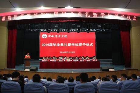6月21日上午,太阳官网2016届毕业典礼暨学位授予大会在陶然楼演艺厅隆重举行。学校领导、学校学位评定委员会委员、各二级学院副处以上干部、教学秘书、毕业班辅导员、校级优秀毕业生、优秀学生干部、授学位学生代表、大学生创新创业“校长奖”获奖者代表、“中国梦•爱国情•成才志”中华经典诵读获奖者代表共计400余人参加了本次毕业典礼暨学位授予大会,大会由党委副书记赵伏友研究员主持。