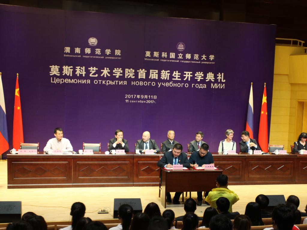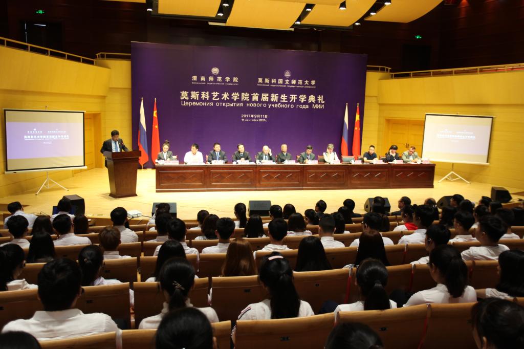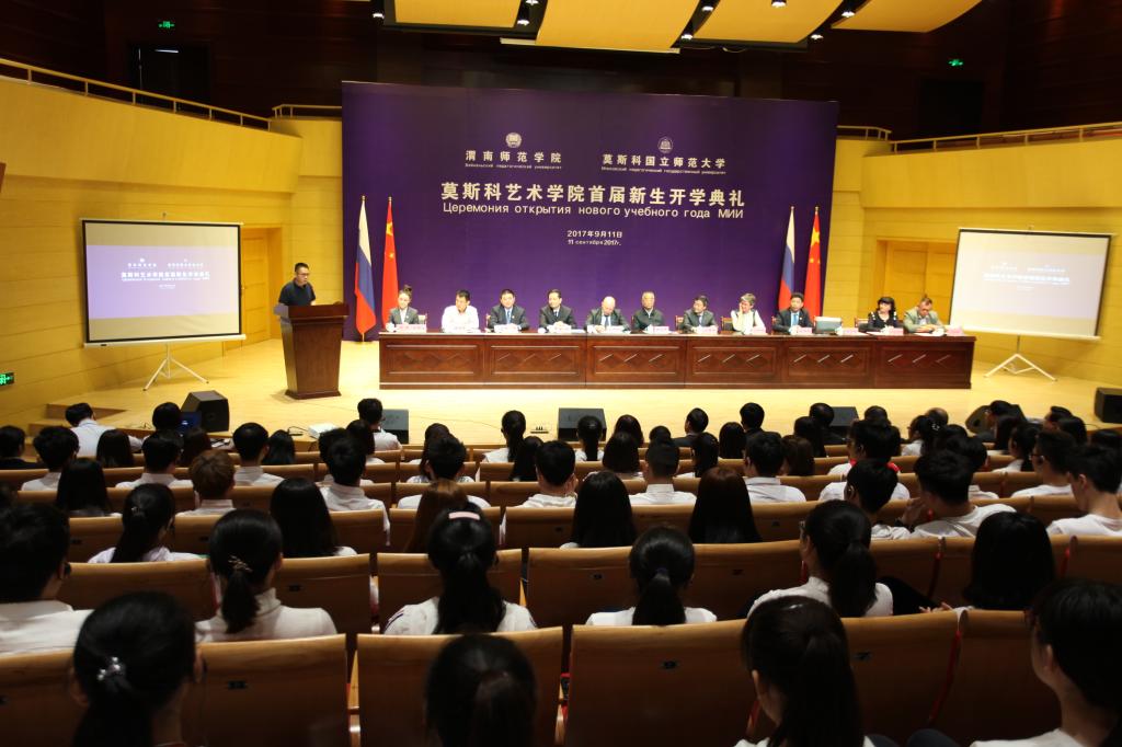 9月11日上午,太阳集团tyc151与莫斯科国立师范大学在太阳集团tyc151朝阳校区华金音乐厅联合举行中外合作办学机构“太阳集团tyc151太阳集团tyc151”首届新生开学典礼。太阳集团tyc151杰出校友、原光明日报社总编辑、西藏自治区常委、宣传部部长苟天林,陕西省教育厅副巡视员李鸣,渭南市委常委、副市长吕培明,凤凰卫视集团•凤凰教育执行董事、行政总裁吴炜强,凤凰数字媒体教育执行总裁汪应忠,陕西省教育厅国际处副处长文通应邀出席,太阳集团tyc151联合办学管理委员会副主任、莫斯科国立师范大学原副校长康斯坦丁•彼得洛维奇•多岑科,莫斯科国立师范大学副校长叶连娜•列奥尼多夫娜•博洛托娃,教师玛格丽特•尤里耶夫娜•巴拉莫诺娃、安德烈•阿列克谢维奇•科诺瓦洛夫,太阳集团tyc151党委书记丁德科,太阳集团tyc151院长卓宇出席典礼。典礼由太阳集团tyc151院长梁晶主持。