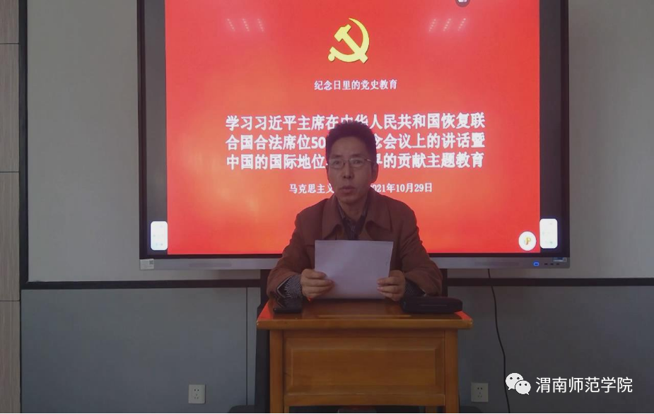 建设网络党校,拓宽教育载体。2020年,开发建设总支网络培训教育平台,截至目前,发布网络教育课程12个,师生思政教育类直播21次,发布中央文件、习近平总书记重要讲话与论述、党章党规等100多个(篇),组织网上考试5次,党员教育、师生思政教育的效率、效果显著提高。拓宽载体形式,强化宣传教育。在学院官网、学工信息网开设“先锋行动”“学习榜样”栏目,先后宣传师生先进事迹20余次。组建“对话渭师人”“探访先辈足迹,深化党史知识”两个宣教视频制作团队,已录制编辑教育短片5个。在学院大厅放置宣教电子屏幕和报纸阅览器,每日更新,先后滚动发布重要时政、思政教育类图文视频800多个,200多种电子报纸累计近20万期。建立周五教师政治学习制度,每周组织教师学习党的创新理论。