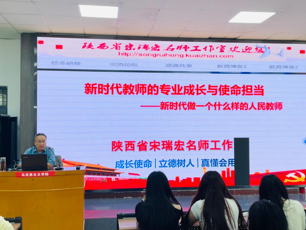 10月16日下午,马克思主义学院邀请陕西三秦英才特支计划教学领军人才、陕西省特级教师、陕西省教学名师宋瑞宏在1101教室作了题为《新时代教师的专业成长与使命担当》的专题报告。马克思主义学院院长张萍、教师代表李昊婧及2023级思想政治教育专业学生参加。报告会由张萍院长主持。