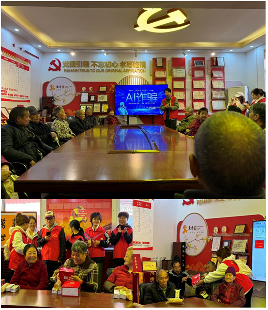 网络安全讲解环节,学校网络安全社团负责人为老人们进行了简单易懂的网络安全知识讲解,用生动的案例和互动问答的方式,帮助老年人了解网络诈骗的常见形式以及如何保护自己的个人信息,并为回答问题的老人颁发奖品。