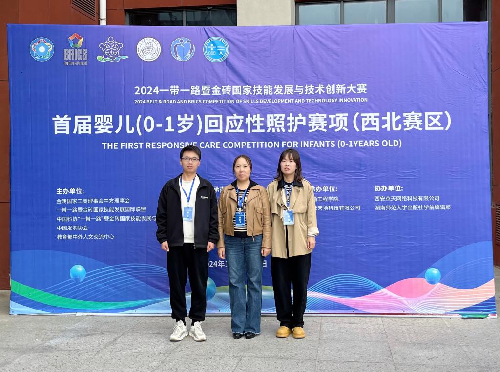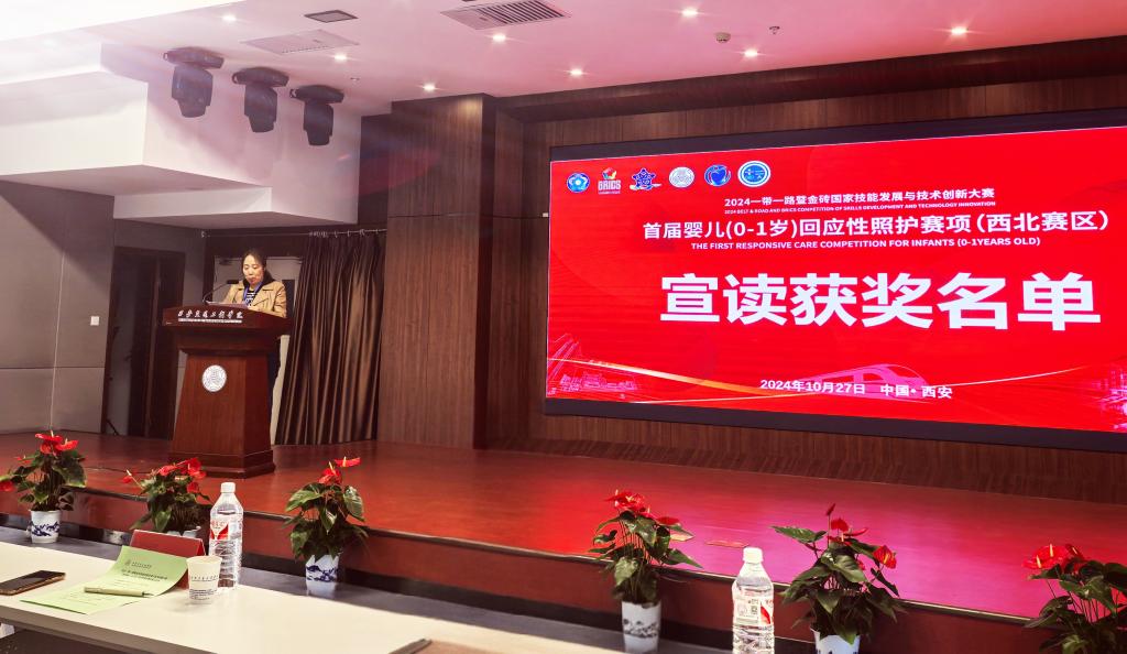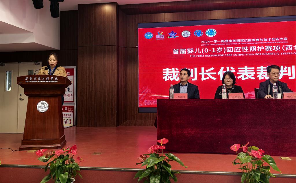 10月25日至27日,教育科学学院学前教育专业学科带头人、院长李西彩受邀赴西安市参加由“中国发明协会、教育部中外人文交流中心”等单位主办,“西安交通工程学院、北京心云天地科技有限公司”联合承办的“2024一带一路暨金砖国家技能发展与技术创新大赛—首届婴儿(0-1岁)回应性照护赛项(西北赛区)”并担任裁判长。