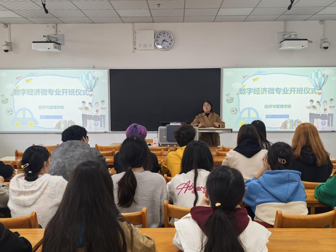 10月30日下午,经济与管理学院在富平校区1121教室举行了数字经济微专业学习开班仪式。开班式由数字经济微专业班辅导员米晨主持,副院长石党英及数字经济微专业修习学生参加会议。