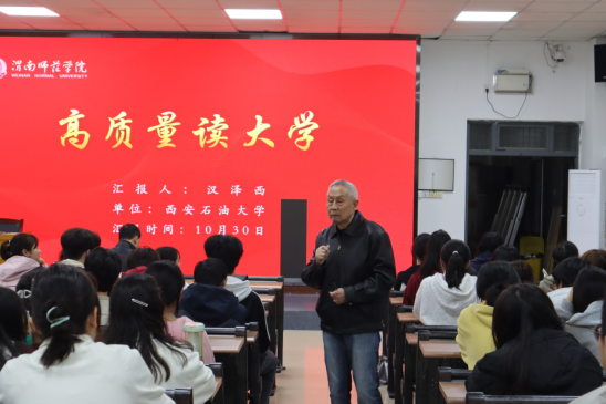10月30日下午,数学与统计学院邀请西安石油大学汉泽西教授为2024级新生作“高质量读大学”专题报告,报告由党总支书记武江波主持,学院120余名学生参加。