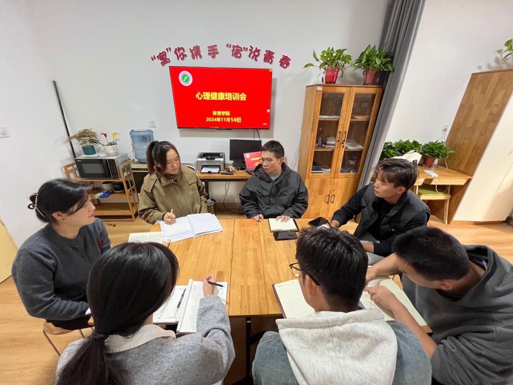 11月14日下午,体育学院在“一站式”学生社区组织召开了心理健康培训会,党总支副书记闵雄飞、学工办主任朱颖妮、团委书记李欣泽、辅导员胡晋豫以及学生会主席团成员。