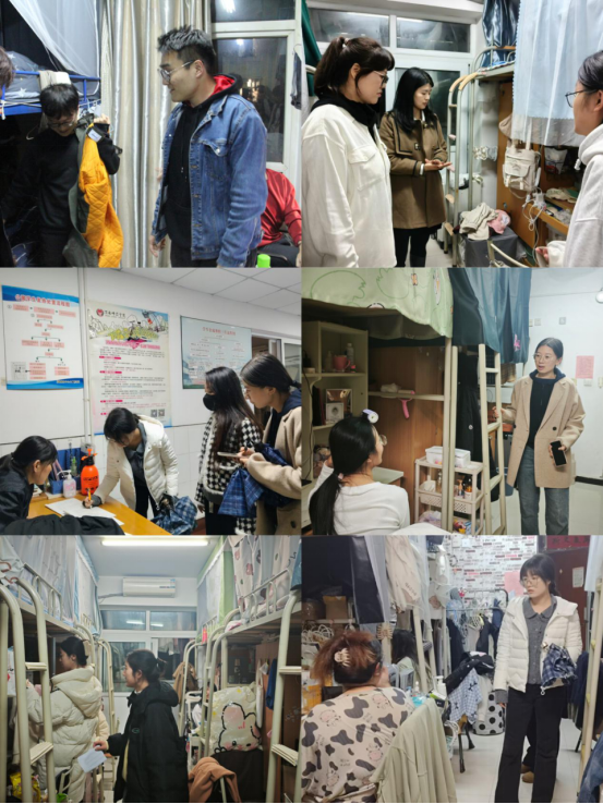 11月12日晚,人文学院党总支副书记王昱和全体专职辅导员深入学生宿舍,着重检查卫生与宿舍安全,助推宿舍文明建设,督促学生养成健康的生活习惯,并传递学院温暖。