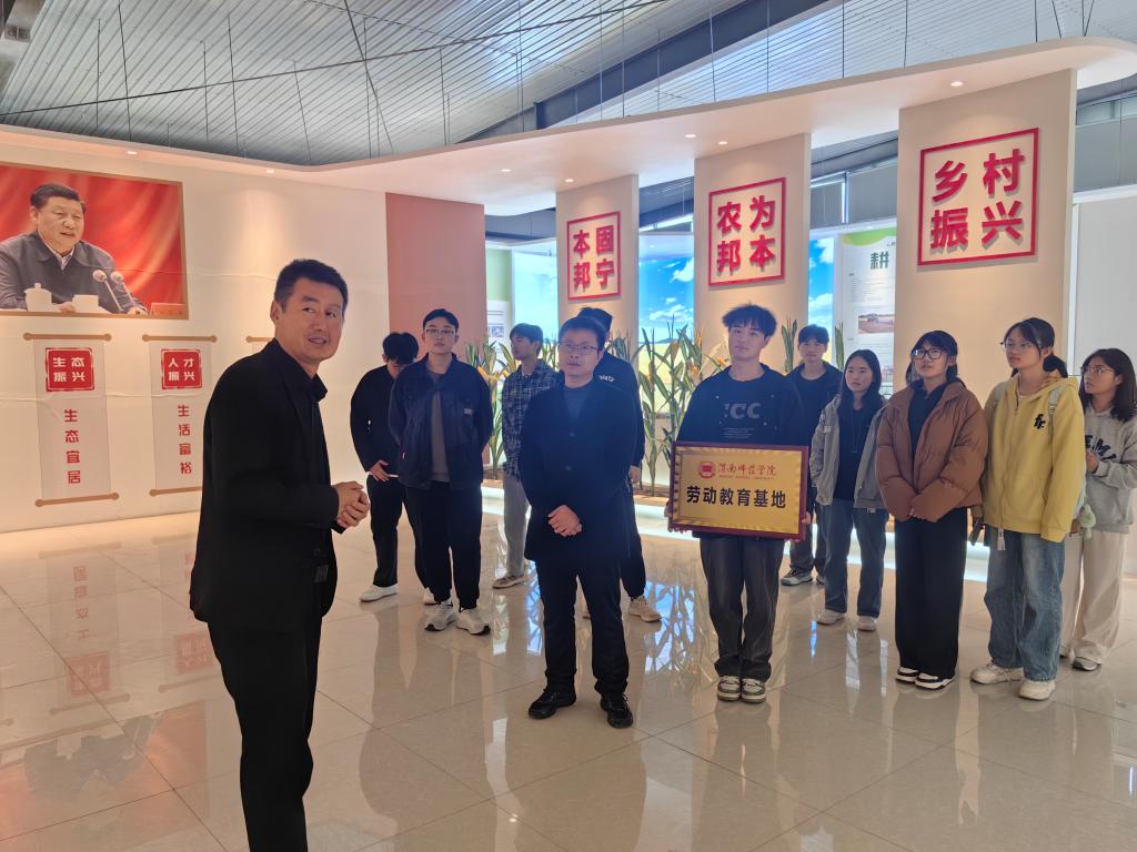 11月14日,数学与统计学院副院长戴磊、辅导员纪璐与学生们赴下邽镇绿盛农业科技有限责任公司进行学习参观并为劳动教育基地授牌。