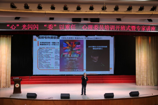 11月18日,太阳官网在陶然楼演艺厅举行心理委员培训开班式暨专题讲座。开班仪式由学生工作部副部长、大学生心理健康教育指导中心主任刘原主持。