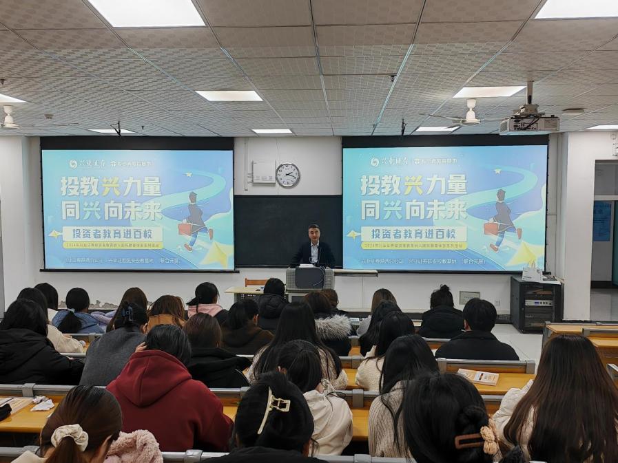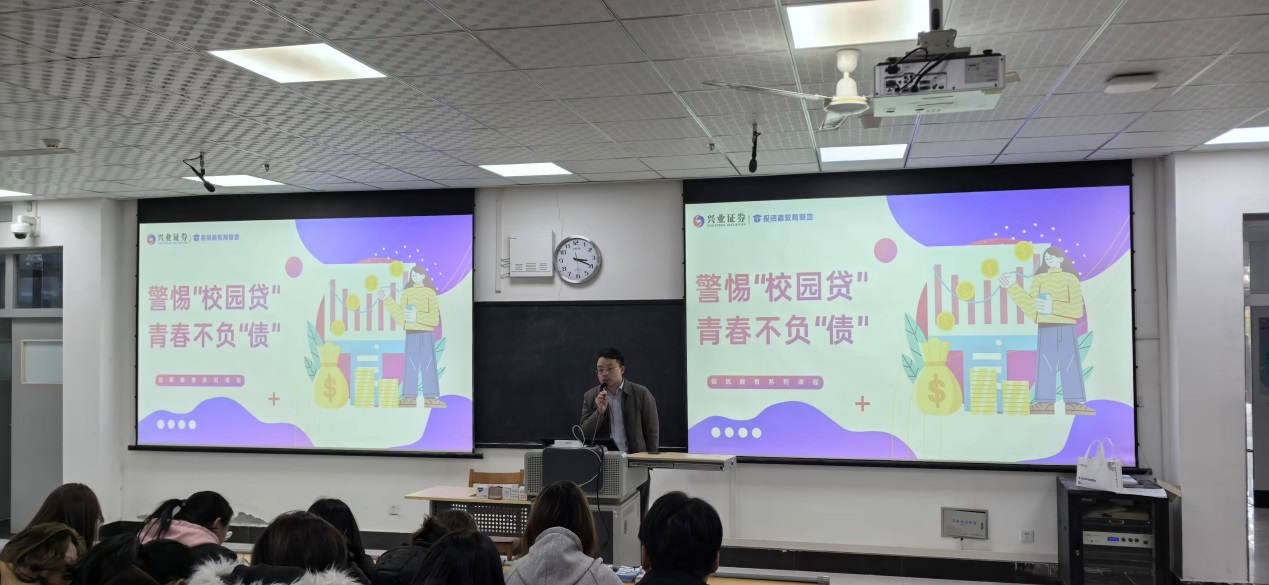 兴业证券公司资深金融专家许朝威老师和王浩老师担任本次讲座的主讲人,分别做了“理性投资,防范风险”“警惕‘校园贷’青春不负‘债’”的主题报告。讲座中,两位老师深入浅出地讲解了股票、债券、基金等常见投资品种的特点及风险,并结合实际案例,分析了近年来校园贷、非法集资等金融诈骗手段,提醒同学们要提高警惕,远离非法金融活动。