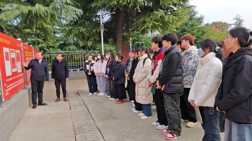 随后,学生们跟随赵琦书记前往室外展览区——国旗故事长廊。赵琦书记以“传承国旗精神 争做时代新人”为题讲述了一堂别开生面的主题党课,从天安门国旗背后的故事讲到了渭华起义精神,从国旗精神讲到了三圣三贤,从渭南历史文化讲到渭师人的奋斗精神,激励广大师生要厚植爱党爱国爱校情怀,培养坚韧不拔的奋斗精神,坚守立志成才的理想,更要有坚定的理想信念和崇高的党性修养,勇于担当作为,积极为学校发展贡献青春力量。