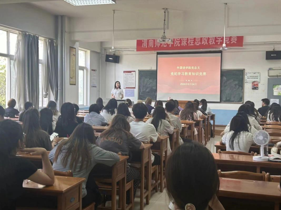 6月24日下午,外国语学院党总支组织在校党员、发展对象、积极分子于致远楼4210、4211教室开展党纪学习教育知识竞赛。